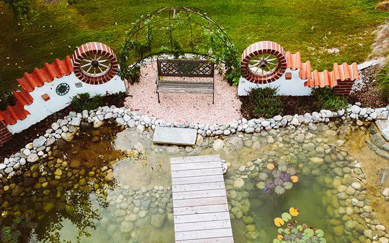 Ein bestehender Chlorpool wurde durch ein kombiniertes System aus Biopool und Zierteich ersetzt. Zwei getrennte Wasserkreisläufe ermöglichen klares Badewasser und einen natürlich bepflanzten Bachlauf. Die Bodenentsorgung war in diesem Projekt in der Region Altötting herausfordernd, aber kein Hindernis für die Realisierung dieses schönen Projektes.